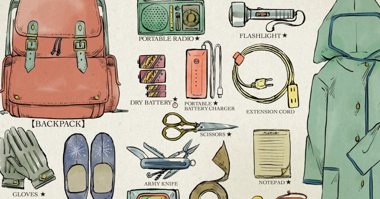 常にカバンに入れとくやつと、持ち出し袋と、備蓄と。